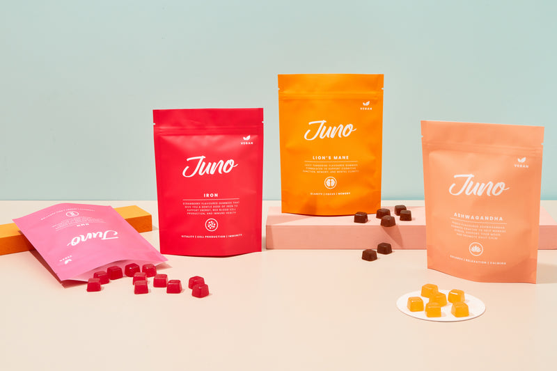 Iron Strawberry Gummies: Ferrous bisglycinate chelate (50 mg, providing 9 mg elemental iron), organic tapioca syrup, organic cane sugar, water, pectin, natural flavour, colours (spirulina, vegetable & fruit juice), citric acid, sodium citrate, carnauba wax.